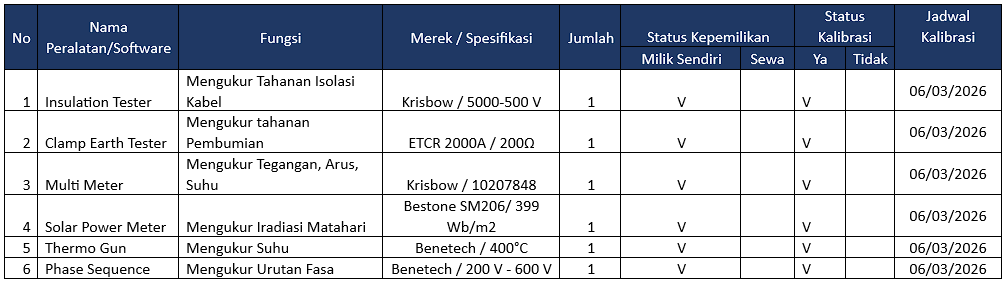 Daftar Pelaratan - PT. Lembaga Kelistrikan Nasional
