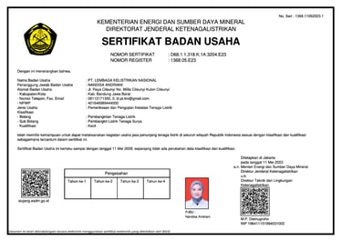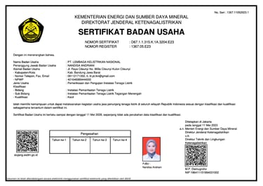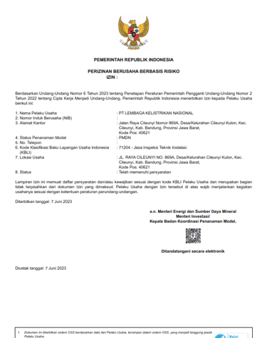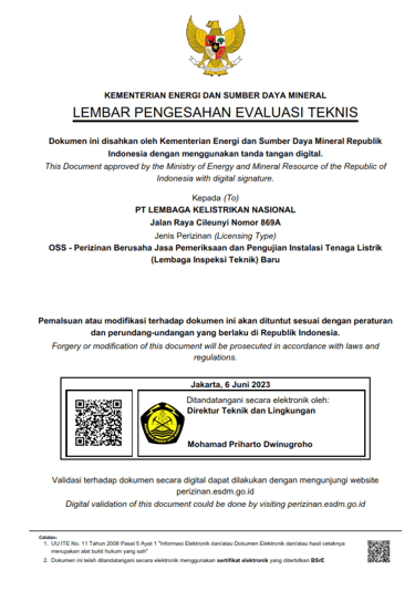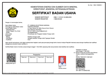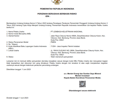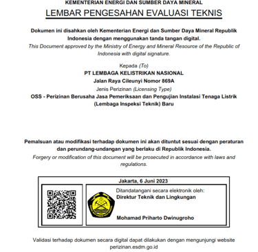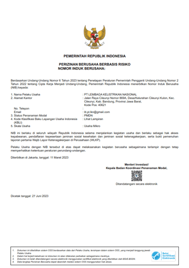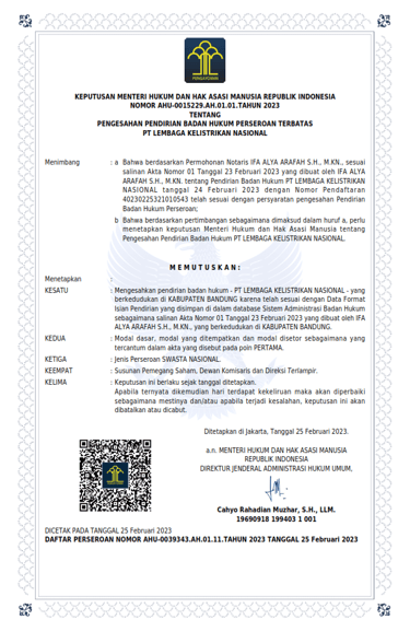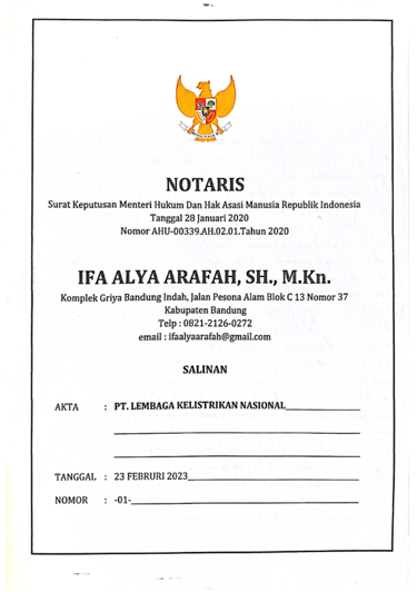 Pengesahan Kemenkumham - AHU-0015229.AH.01.01.TAHUN 2023" PENGESAHAN PENDIRIAN BADAN HUKUM PERSEROAN TERBATAS PT LEMBAGA KELISTRIKAN NASIONAL"